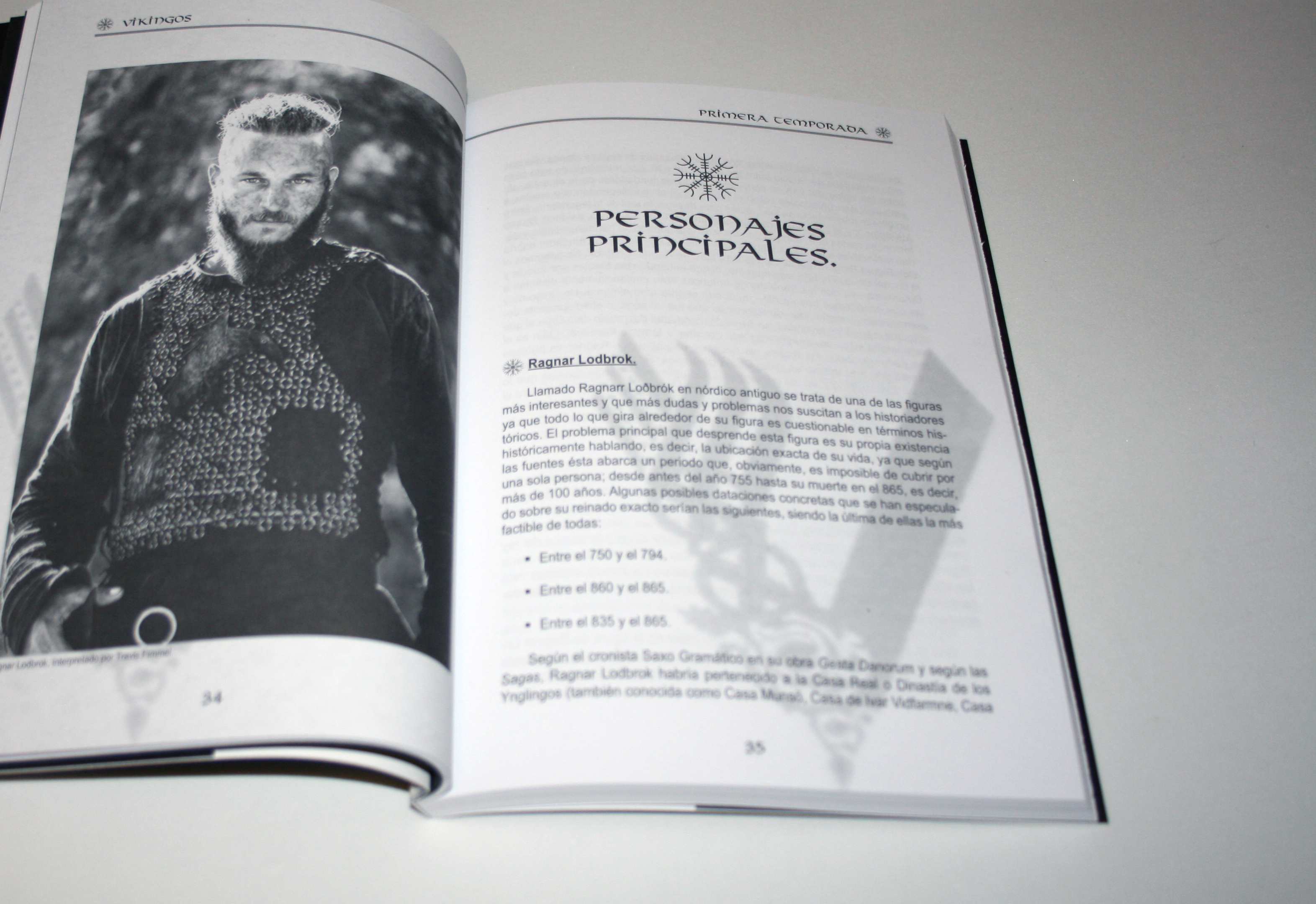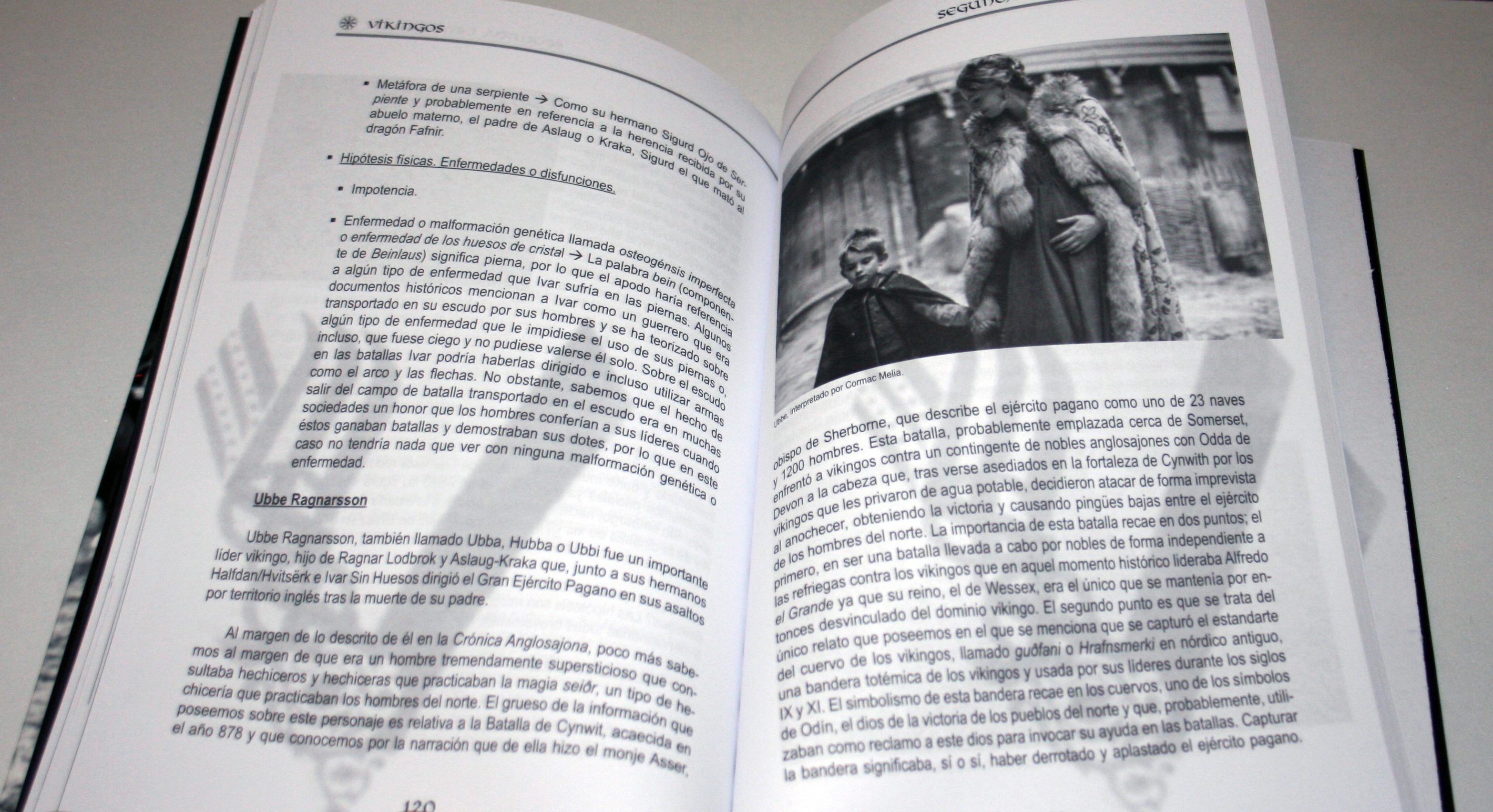 A lo largo de las 180 páginas del libro vamos a presentar, ayudándonos de fotos de la serie, unas breves consideraciones para con la serie (para que sepáis cómo enfrentaros al libro y qué es lo que es éste), un contexto histórico para situar las acciones que tienen lugar en estas dos temporadas en el espacio y en el tiempo. Posteriormente vamos a dividir el libro en dos grandes partes – primera y segunda temporada – que contarán con esquema muy similar; presentación histórica de los personajes principales de la temporada, análisis de los temas que se tratan en cada capítulo y, para finalizar, una amplia sección analizando detalladamente algunas escenas y hechos concretos de la temporada que he considerado los más relevantes. No obstante, realizar un análisis pormenorizado de cada capítulo se vuelve muy complicado desde el momento en el que hay que tocar multiplicidad de temas de forma pormenorizada que harían el análisis tremendamente extenso y, sobre todo, pesado, ya que habría que parar la narración una y otra vez para imbuirnos en temas concretos como el vestuario, las armas, las formas de combate, la mitología y muchos más. Asimismo, incurriríamos en repetir varias veces los mismos temas ya que algunos aparecen con frecuencia. Por consiguiente, lo que se ha hecho ha sido establecer una serie de referencias para cada capítulo de la serie que podrán consultarse, si así se desea, en el libro Quiénes fueron realmente los vikingos. Un estudio sobre la historia y cultura del pueblo escandinavo entre los siglos VIII y XI”, San José Beltrán, Laia. Quarentena Ediciones, 2014, Barcelona. ISBN 978-84-16229-10-9.